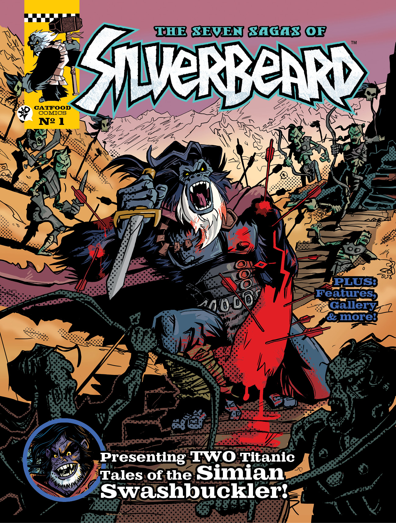 The first, HELL-BOUND is set during a period of seafaring, high adventure for Silverbeard who has been relentlessly pursuing the World Tree – the only route back to the celestial city of Ash-Halla, home of the Gods who betrayed him.  By partnering with the Pirate Brotherhood, Silverbeard is finally set to locate and reach the Tree. With revenge in his grasp, why does the Simian Sailor then suddenly break his agreement and sail away from the expedition? Where could he be heading? The buccaneers send a shadowy figure from Silverbeard’s past, the roguish jaguar assassin Obsidior, with an ultimatum – return or die!